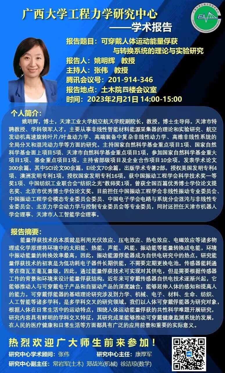 欧冠官方网站工程力学研究中心学术报告:可穿戴人体运动能量俘获与转换系统的理论与实验研究