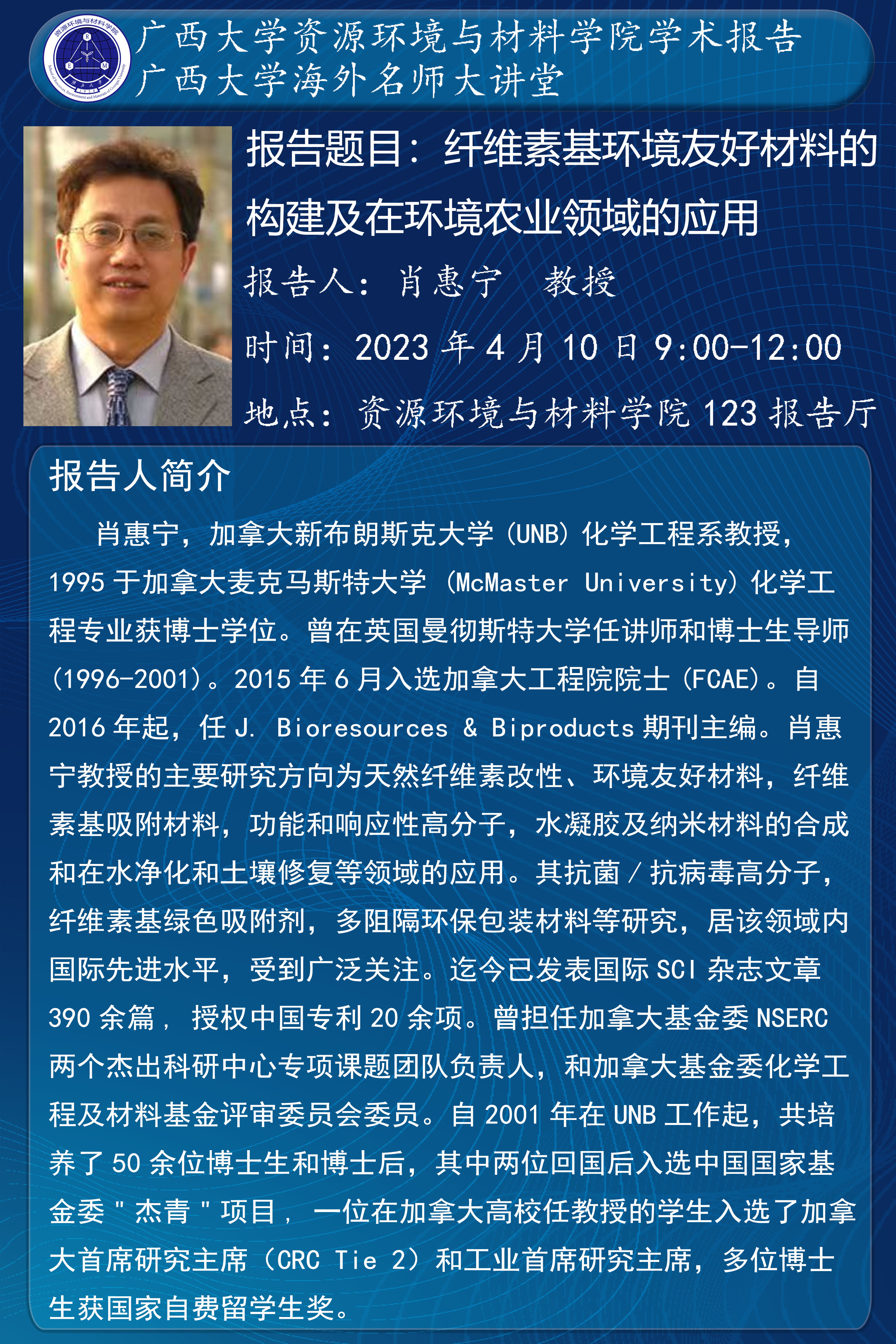 欧冠官方网站海外名师大讲堂:纤维素基环境友好材料的构建及在环境农业领域的应用