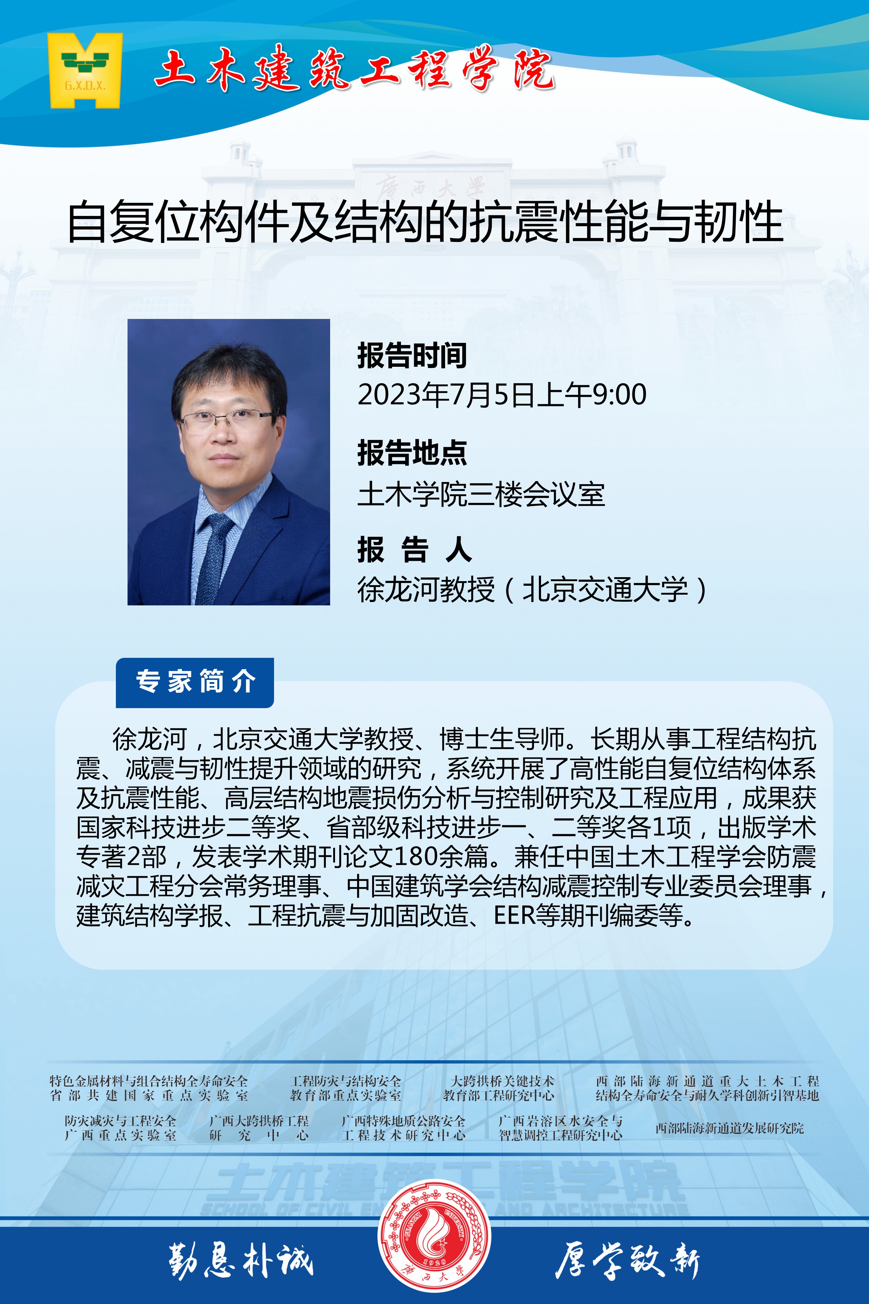 土木建筑工程学院学术讲座:自复位构件及结构的抗震性能与韧性