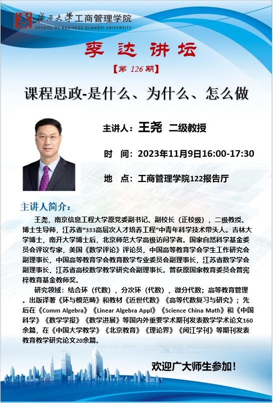 工商管理学院学术报告:课程思政——是什么 为什么 怎么做