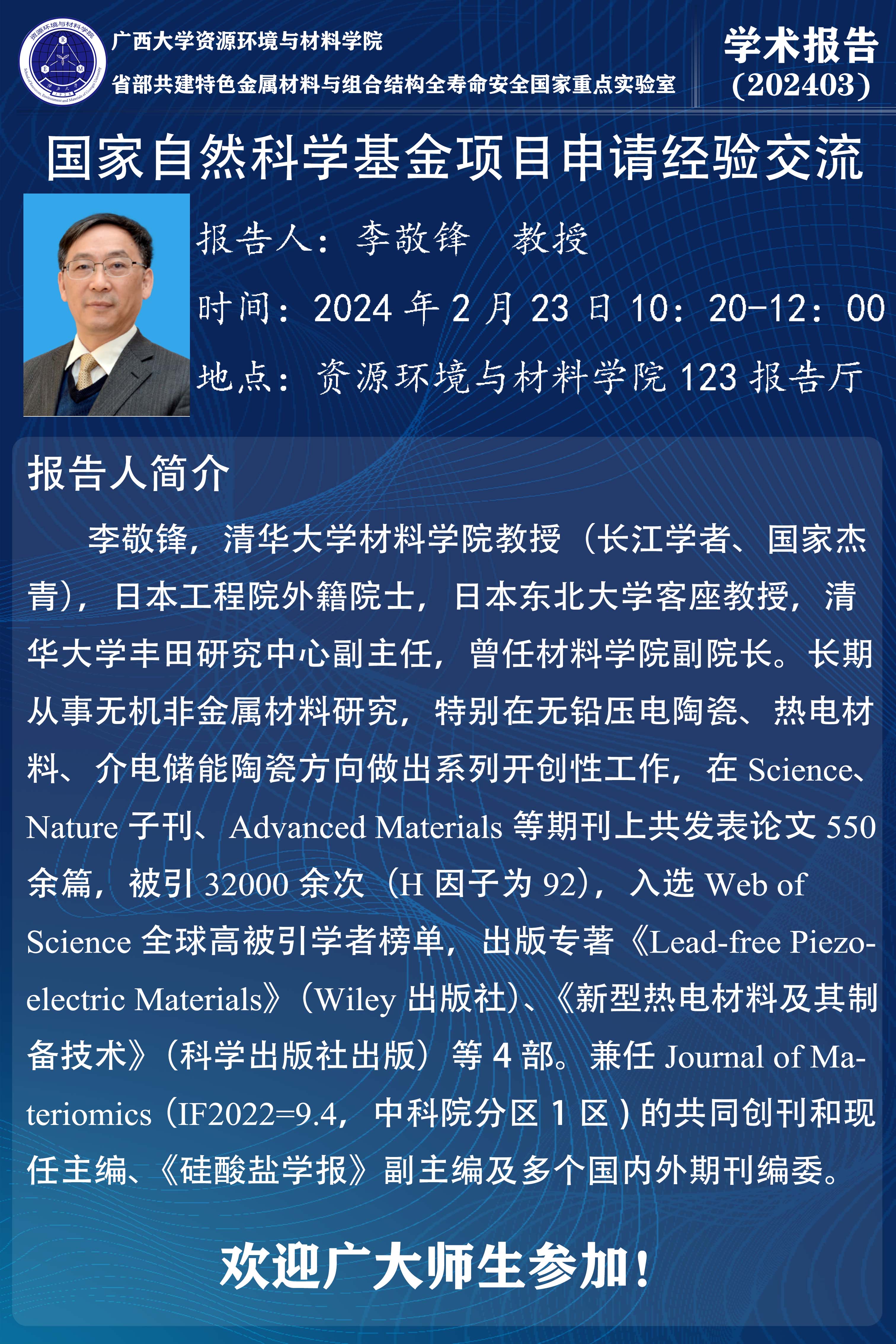 资源环境与材料学院学术报告:国家自然科学基金项目申请经验交流