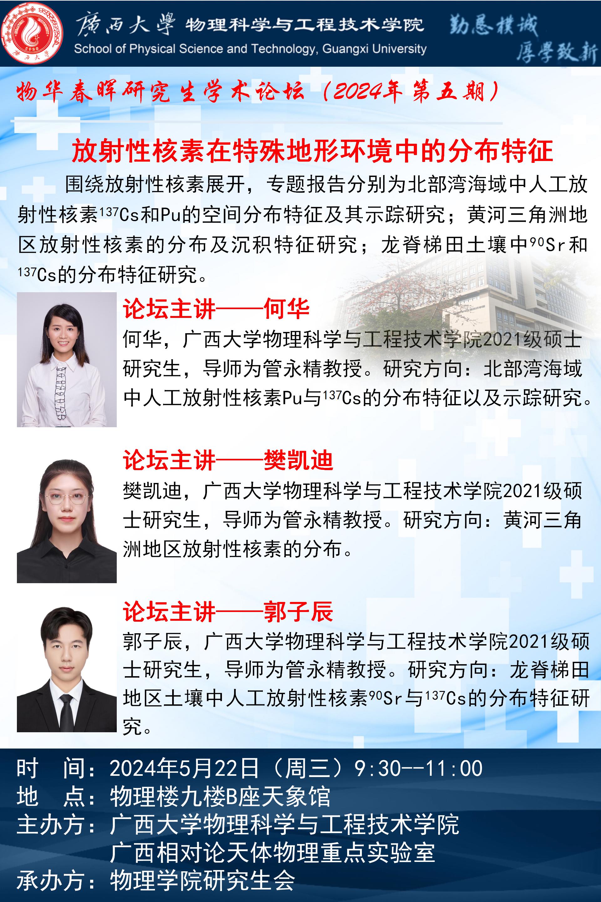 物理学院2024年物华春晖学术论坛(第五期):放射性核素在特殊地形环境中的分布特征
