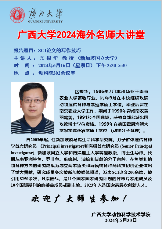 欧冠官方网站2024海外名师大讲堂:食用鱼的遗传学改良