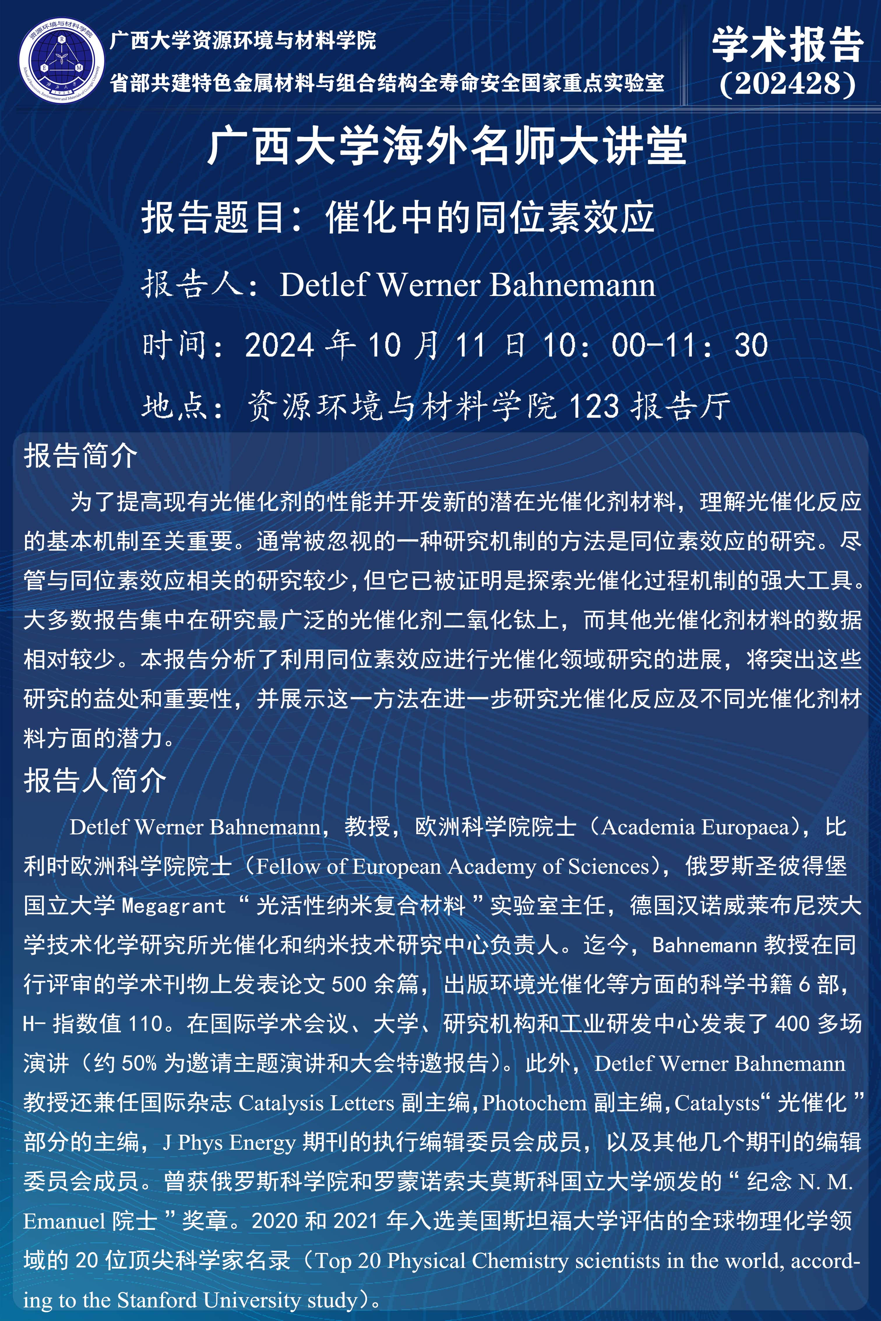 欧冠官方网站海外名师大讲堂、资源环境与材料学院学术报告:催化中的同位素效应