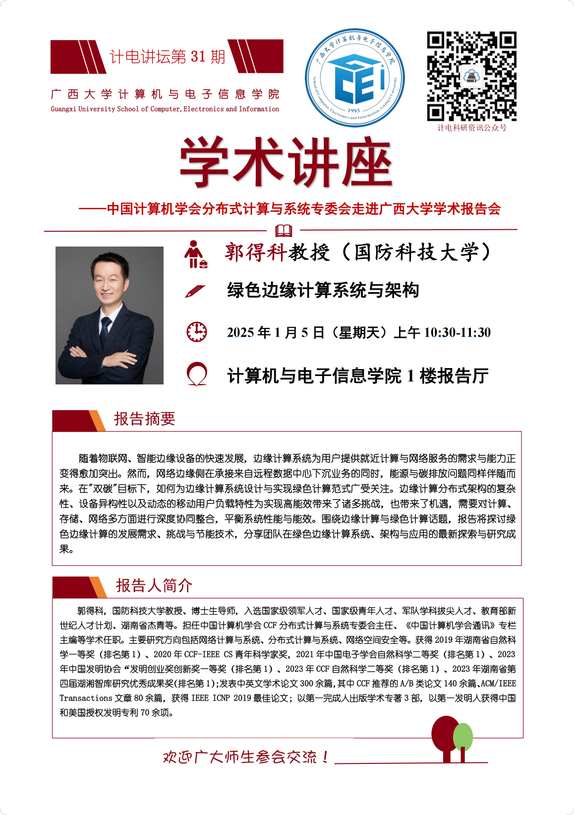 “计电讲坛”系列活动第31期——中国计算机学会分布式计算与系统专委会走进欧冠官方网站学术报告会:绿色边缘计算系统与架构