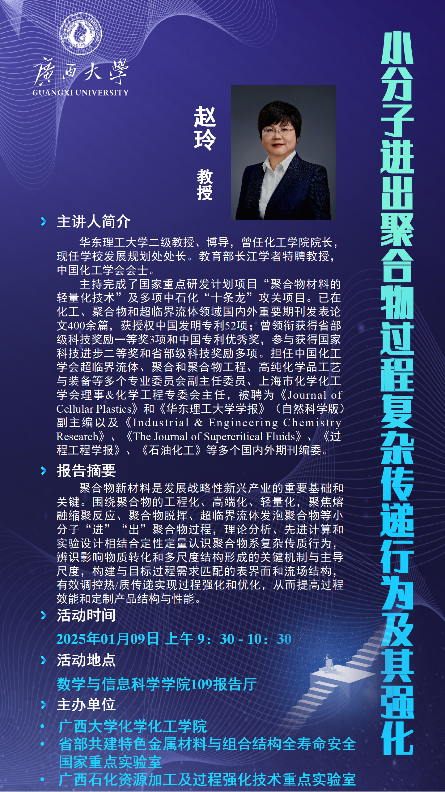 化学化工学院学术报告:小分子进出聚合物过程复杂传递行为及其强化