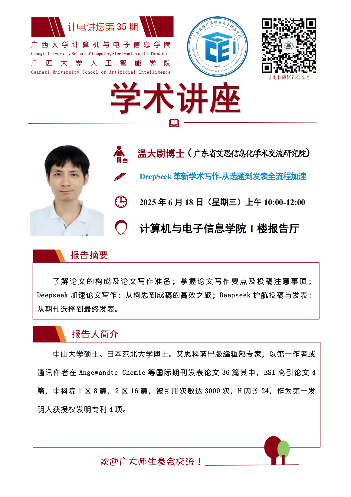 “计电讲坛”系列活动第35期:DeepSeek 革新学术写作-从选题到发表全流程加速