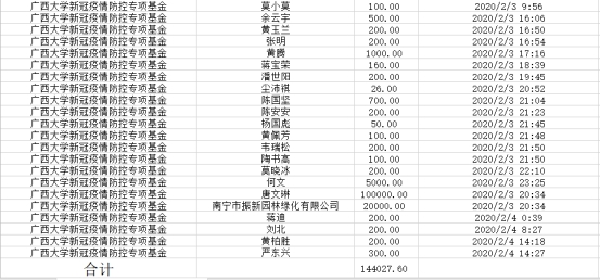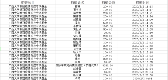 自欧冠官方网站校友总会与教育发展基金会发布捐赠公告以来,截至2020年2月4日晚上7点整,基金会共接受捐赠45笔,具体明细如下: