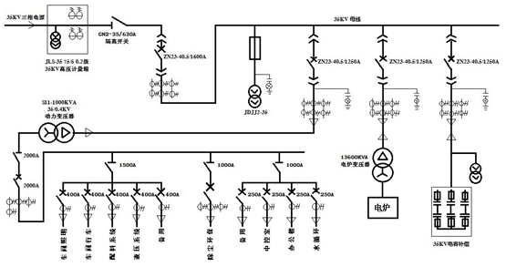1.炉子主体主要参数: ▲1.1 炉子容量:400 kVA。 ▲1.2一次额定电压35kV。 ▲1.3 炉壳直径:4000 mm。 ▲1.4 炉壳高度:2500 mm。 ▲1.5 炉膛直径:2400 mm。 ▲1.6 炉膛深度:1200 mm。 ▲1.7 极心圆直径:1100 mm。 ▲1.8 电极直径:300 mm。 ▲1.9 烟罩高度:1600 mm。 2.建设要求 2.1 赤泥炉远程自动、手动两种模式控制。 2.2 远程视频监控。 2.3 其他设备远程及机旁手动操作。 2.4在采购人指定地点建设配料烘干系统、安装除尘器、出铁系统和筑炉、筑包打结之后,项目能正常生产。 2.5设备配置清单表中所列的供货明细为必备条件,但不是充分条件,竞标人应自动补齐不足部分条件。 2.6钢结构件全部喷耐温250℃防锈漆三遍。 3.施工条件 3.1供电:采购人提供施工电源至计量总开关供施工现场使用,并提供 380V/220V 工业电源。 3.2供水:采购人提供施工水源至计量 总开关供施工现场使用,并提供水源至冶炼车间建设。 4、赤泥炉设备部分 4.1结构形式及组成: 釆用半封闭式固定式矿热炉,包括炉体、烟罩、电极液压升降系统、供电系统、短网系统、冷却系统、测温系统、控制系统和监视系统。 ▲4.2炉体: 炉体为园柱状固定形式:炉壳用&=14的Q235板圈制,外部加以辅筋(&=18);炉底板δ=22的Q235钢板焊制。用平行分布的30#工字钢支撑炉体,工字钢之间的中心距320mm。炉体对地及操作平台绝缘。 ▲4.3烟罩: 4.3.1采用半封闭高烟罩双层异径构造,分为下烟罩和上烟罩。下烟罩直径与炉壳尺寸相匹配,高度(净高)为800mm,由骨架、侧板和烟罩盖板组成。 4.3.2骨架为水冷式,用φ133x12mm无缝钢管制造(内侧或底面焊耐火材料铆固钉),材质为Q235。骨架由立柱、大水圈、小水圈和连接大、小水圈的水平直管构成。 4.3.3大水圈直径与炉壳直径对应,小水圈直径与电极外轮廓圆对应。大、小水圈在同一水平面上。 4.3.4侧板和盖板用厚度为6mm的A3钢板焊制(内侧或底面焊耐火材料铆固钉);在3个大面的侧板上各开一个合叶式炉门。盖板水平分布在大、小水圈之间,小水圈内圆不设盖板。 4.3.5上烟罩由圆周板、顶板和法兰构成。圆周板直径与3根石墨电极所形成的外轮廓圆相匹配,高度为800mm;在电极对应部位的圆周板用宽度与电极一致的304不锈钢制造、厚度5mm,其余部位用A3板制造、外表面焊加强筋,厚度6mm;顶板用304不锈钢板焊制,厚度为5mm,上表面焊加强筋。 4.3.6上、下烟罩用法兰连接,烟罩与操作平台绝缘。 ▲4.4电极升降及更换系统: 4.4.1采用全液压系统来保证电极的升降平稳,电极采用液压缸来抱紧及松夹,当加接电极时利用吊车吊起电极,人工旋转(拧紧)电极,加接后吊车不动,导电横臂抱闸松、导电横臂上移、达到所需增加的长度后抱闸抱紧,吊车松开,加接完成。 4.4.2每个电极单独控制、升降控制平稳、噪声小并保证垂直度。 ▲4.5液压系统: 4.5.1系统由液压站、控制阀组、管路组成,为电极升降及压放电极提供动力,要求升降平稳、手动操作; 4.5.2贮能稳压失电时可用能锁紧电极;液压元件利用国产高质量达到或超过国标的产品。 4.5.3液压油采用水-乙二醇,成交人按标准加满液压油。 ▲4.6冷却系统: 4.6.1冷却系统是保证电炉各系统部件安全运行的有效保证,它对电炉所需冷却部件进循环冷却; 4.6.2其主要组成:a.外部供水部份,b.内供水冷却循环部份;外供水由二台5.5kw/0.5Mpa水泵(一台备用)组成,内供水由车间内,根据各部件要求设置管阀、管线、软管、回水管、集水管(或槽),在现场依据实际位置,以美观实用为原则来布置。 4.7导电短网系统: 4.7.1该系统是将变压器的电能送入炉内的主要载体,是电炉关键。 4.7.2电流密度确保:a.有水冷部份电流密度≤2.5A/(mm)2,b.无水冷处软接处≤2.0A/(mm)2;所有导电体与支撑、吊挂、夹持处必须可靠绝缘,并做好防磁处理。 4.8测温系统: 4.8.1测温系统包括热电偶、补偿导线、变送器和温度仪表(显示器显示)。 4.8.2分别在三根电极对应炉底各安装一支热电偶,在炉身周围安装8支。 4.9操作控制窒: 4.9.1采用操作及普通监控设备;各参数的数据显示、历史记录、故障保警以及打印功能以人工操作为主。 4.9.2配作以下各种功能。 a.工艺流程全貌:显示电炉控制主画面和各种电炉数据; b.电炉变压器各种技术参数; c.各工作介面即时全貌; d.历史数据保存、调取、打印。 4.10供变电系统 4.10.1外线至供配电房间的专线,供电线图部份由具有相应资质的公司进行设计、安装,费用由成交人负责。 4.10.2电炉供电控制部份如下图。