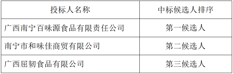 中标信息:见下表。如第一中标候选人放弃中标,顺延为第二中标候选人,以此类推。