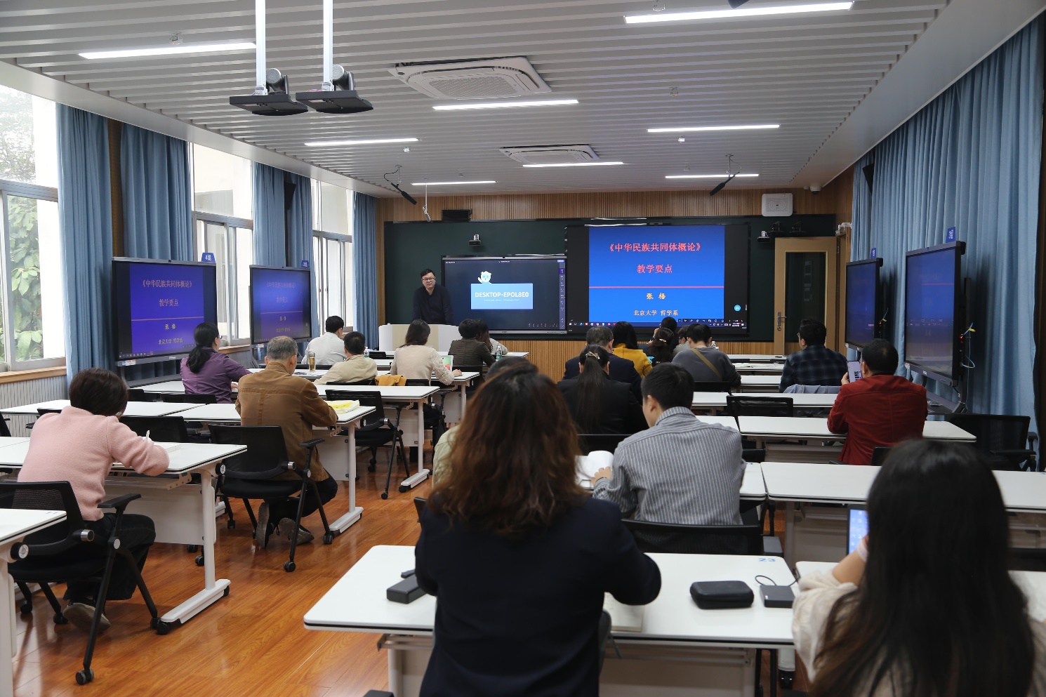 本次培训邀请了中央民族大学历史文化学院院长彭勇教授、中央民族大学民族学与社会学学院杨须爱教授、中央民族干部学院教研部主任黄云博士、北京大学哲学系张梧研究员做主题讲座。四位专家深入阐释习近平总书记关于加强和改进民族工作的重要思想,系统讲述中华民族共同体发展的历史脉络、丰富内涵和实践路径。